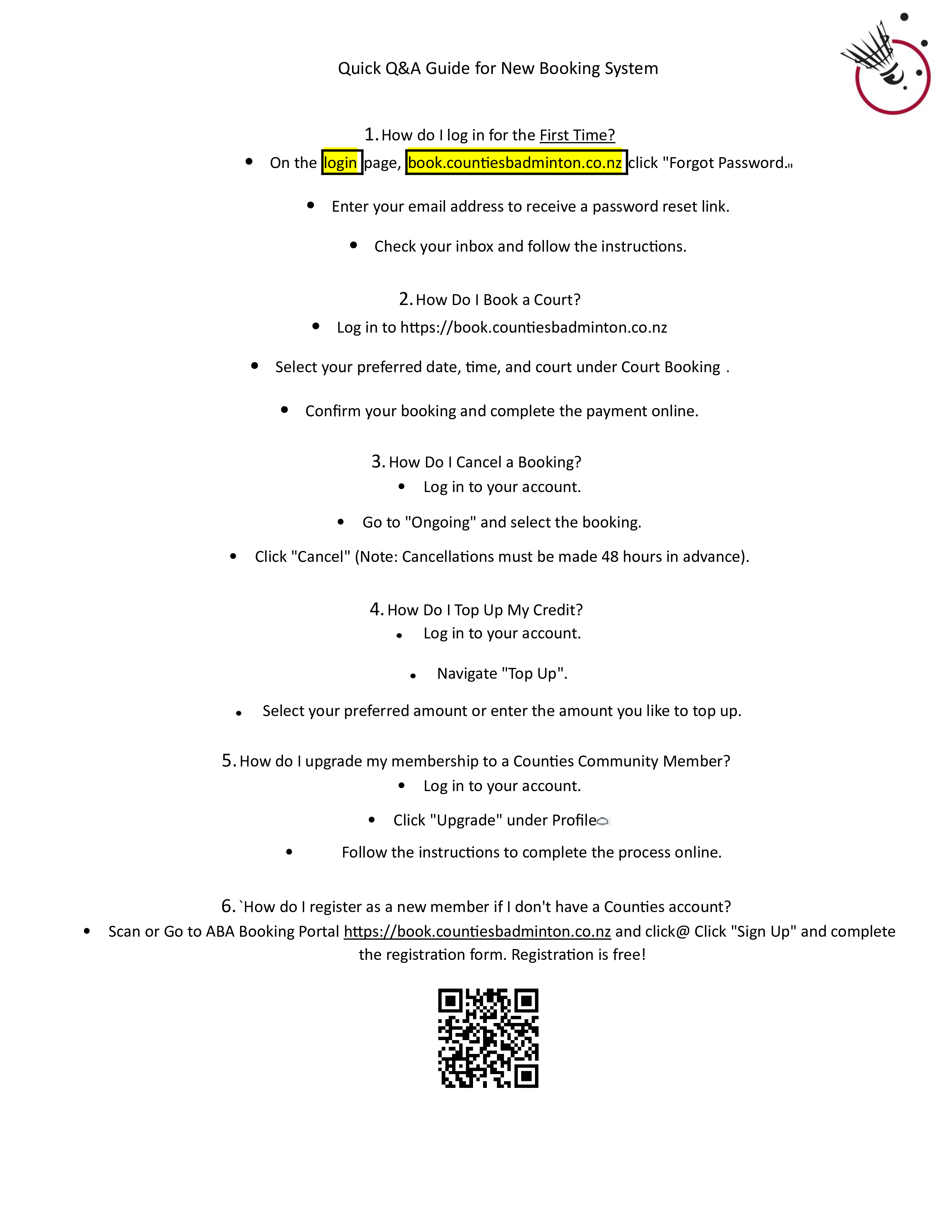 Please note any court bookings cancelled within 48 hours of booking will not receive any refund